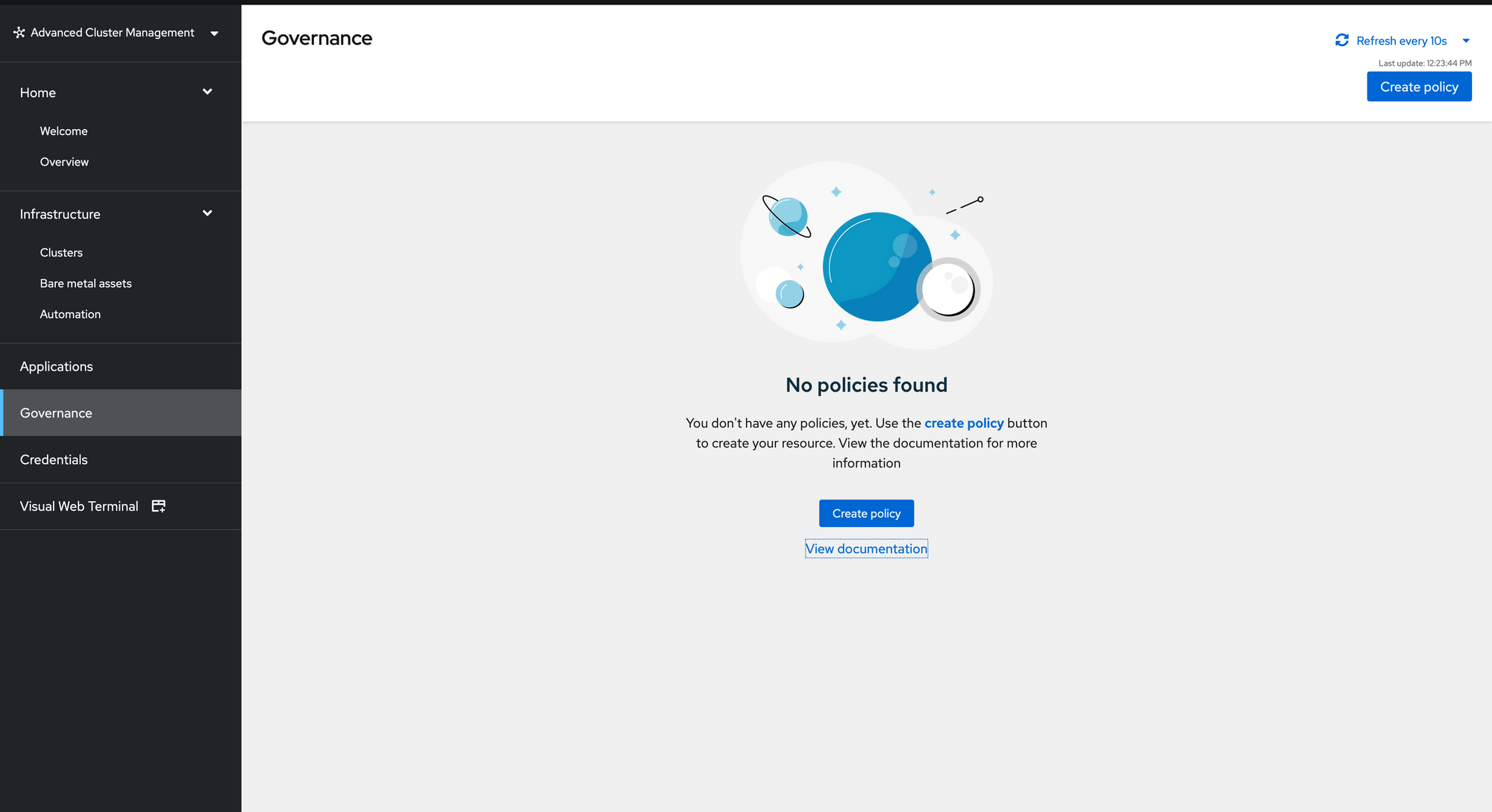 oc adm policy add-cluster-role-to-user open-cluster-management:subscription-admin system:admin4. Run the following command to deploy the htpasswd policy. This command will push any policy from the my-policies path but this is the only policy currently there.