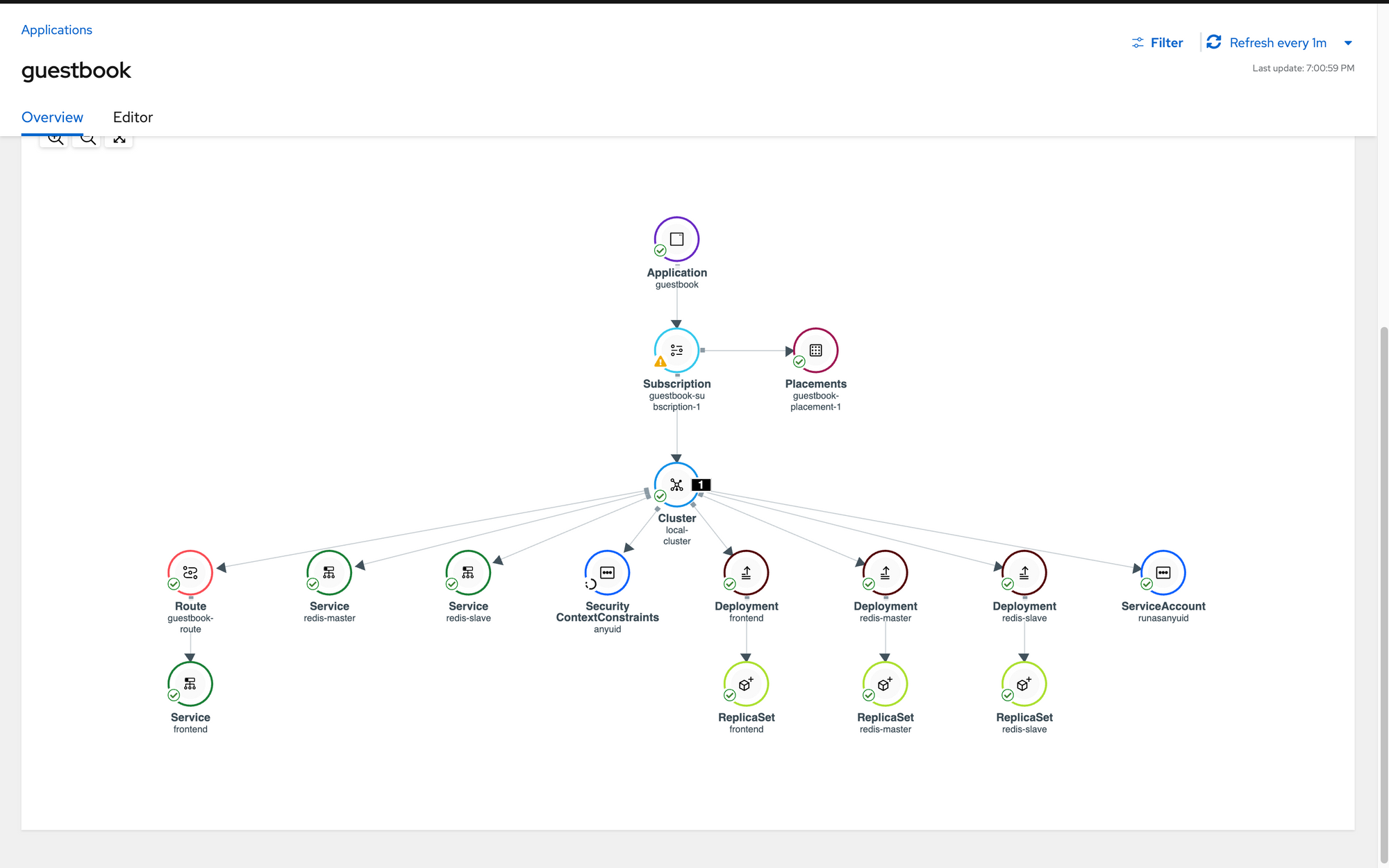 In the overview tab, a list of current applications will be shown (and status information if applicable). There is nothing setup on the cluster just yet but this will change shortly.
