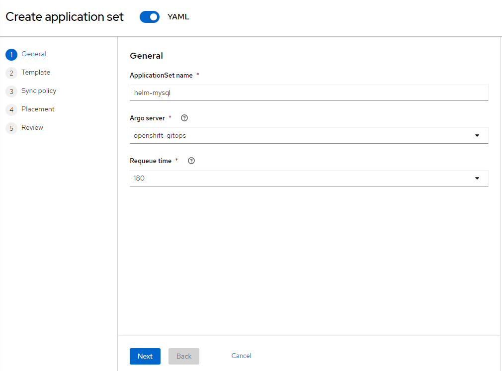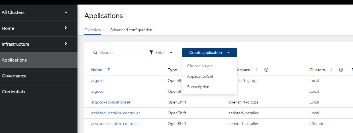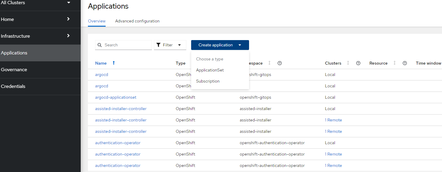 - In ACM GUI, go to Applications --> Create Application --> ApplicationSet