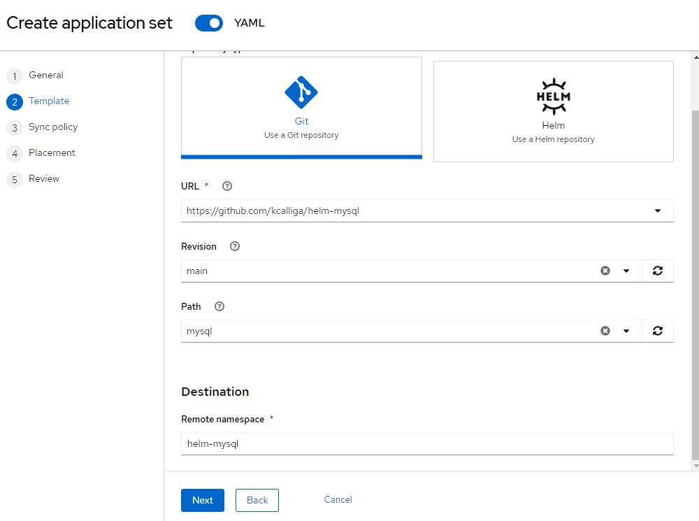 ApplicationSet Name: helm-mysql
