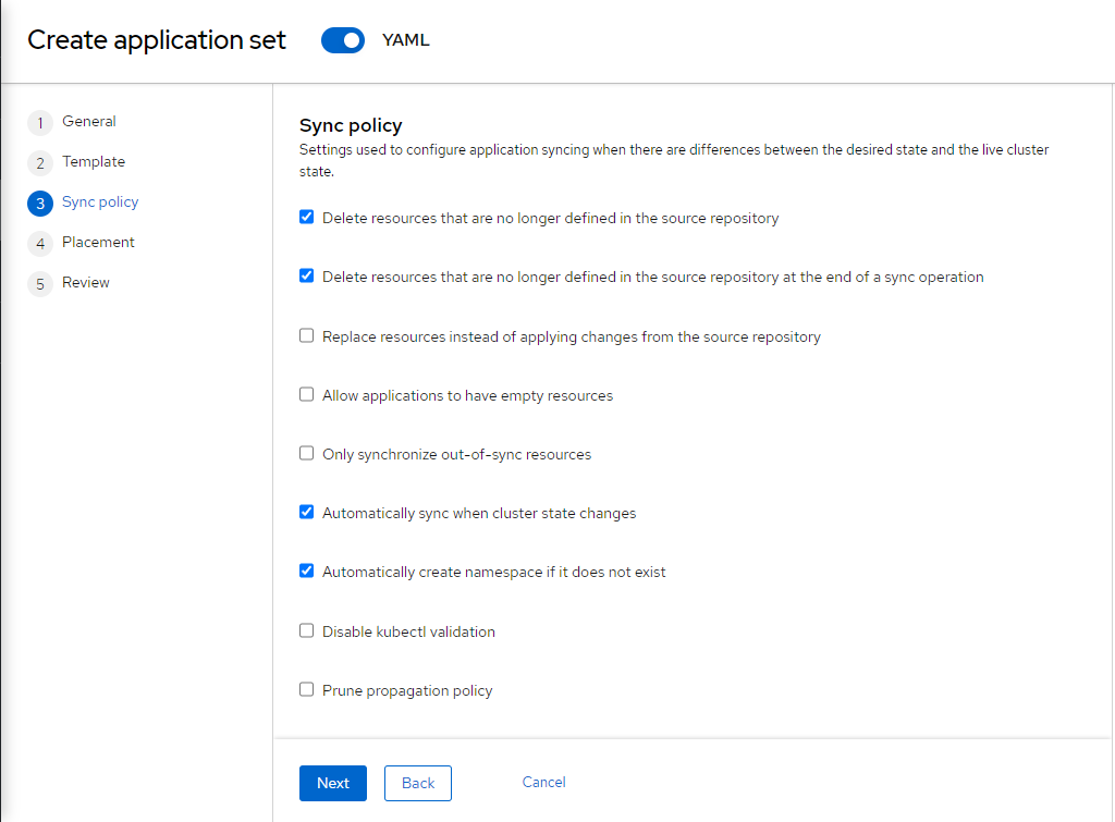 Accept the defaults for sync policy