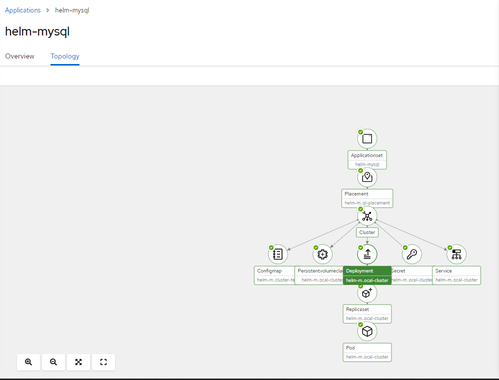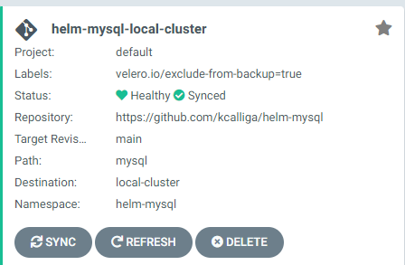 5. On the front-screen of Openshift Gitops/ArgoCD you should see the helm-mysql app.