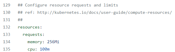 This values file will set the mysql container to only use 128 Mi of memory (as opposed to the 256Mi defined in the Helm repo/tgz file).