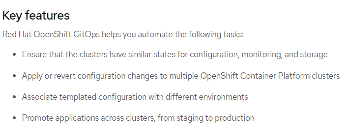 There are many other features of Openshift Gitops as well:
