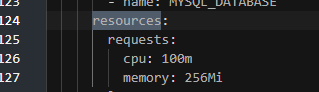 Look for resources on the mysql container and see that they are the default values from the tgz file on main helm.sh Repo site.