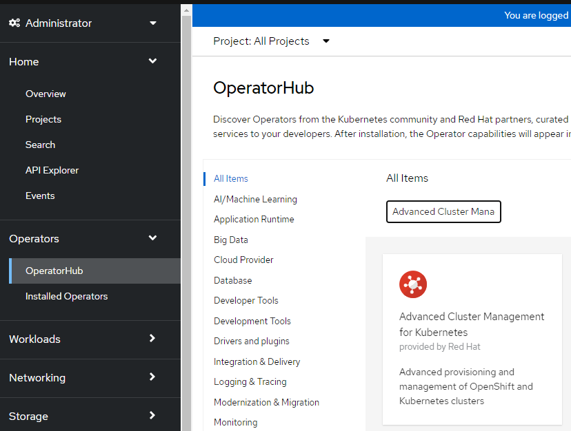 - Search for "Advanced Cluster Management"