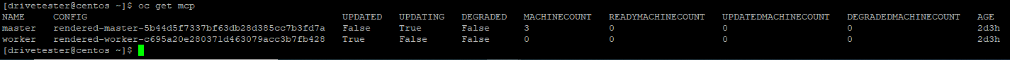 path: /etc/containers/storage.conf6. This will cause all of the nodes to reboot. You will also see the machine-config-pool updating. In my case, this is master pool because I have a combination master/worker nodes.
