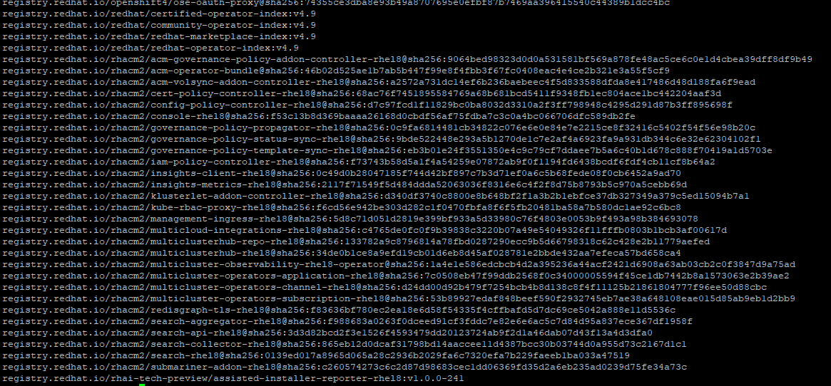 Once the cluster is built, I will install some add-on operators just to show how you how to use the catalog (and oc get commands) to find the list of images required by each operator.