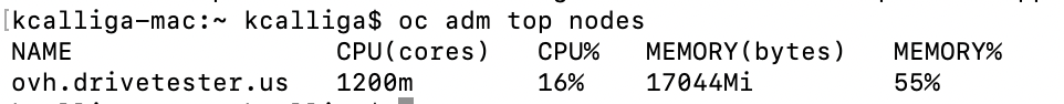 The "oc adm top" command has a few flags that will help us for capacity planning purposes. The pod and node output is very useful. This command shows current utilization.