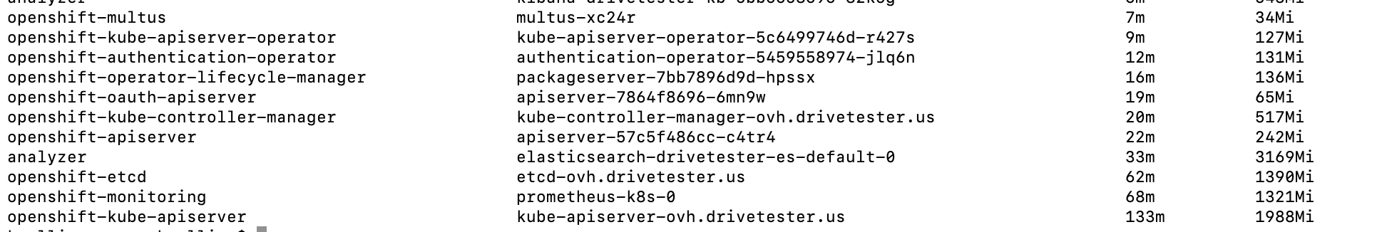 For example, the kube-apiserver pod is using 133 millicores (.133 threads) currently
