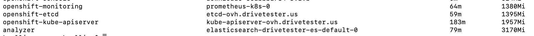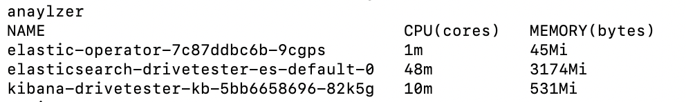 The highest usage (by memory) in my environment is an elasticsearch pod that runs as part of my drivetester website. It is using 3.170 GB of memory currently.