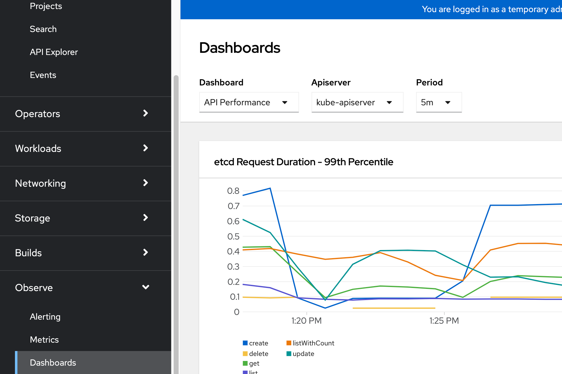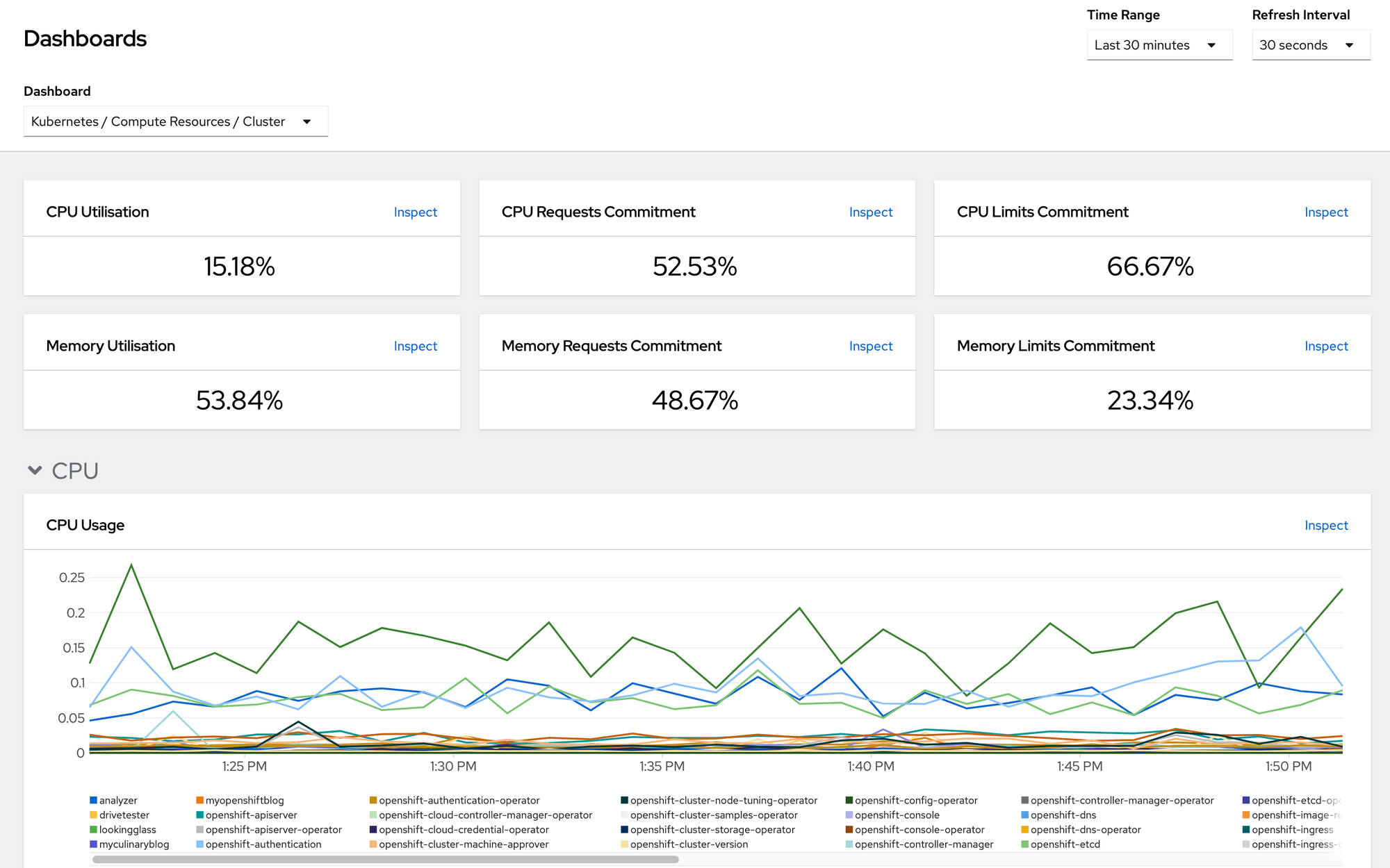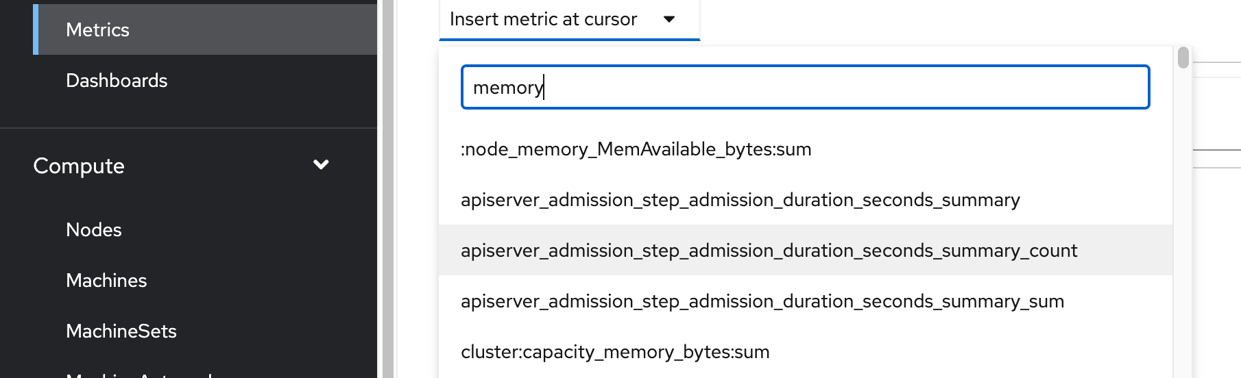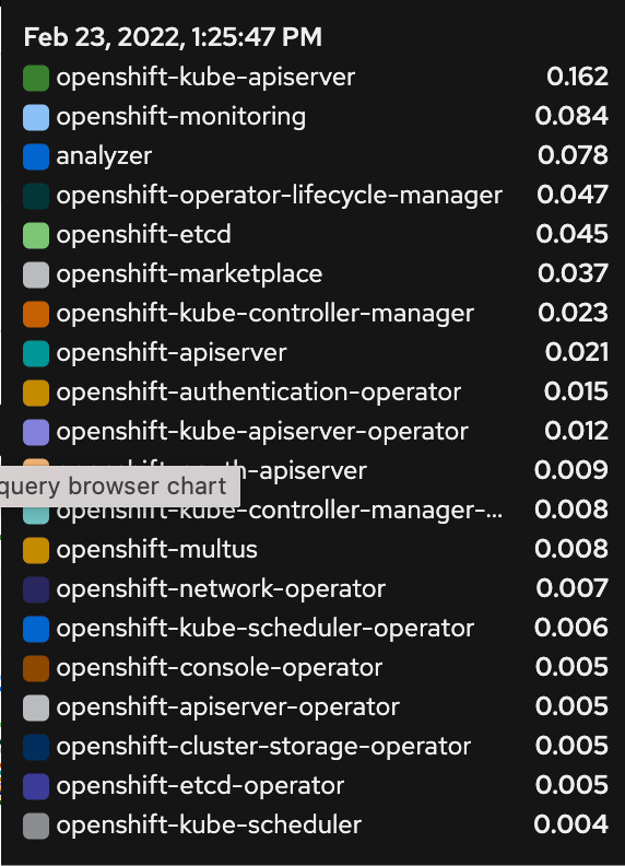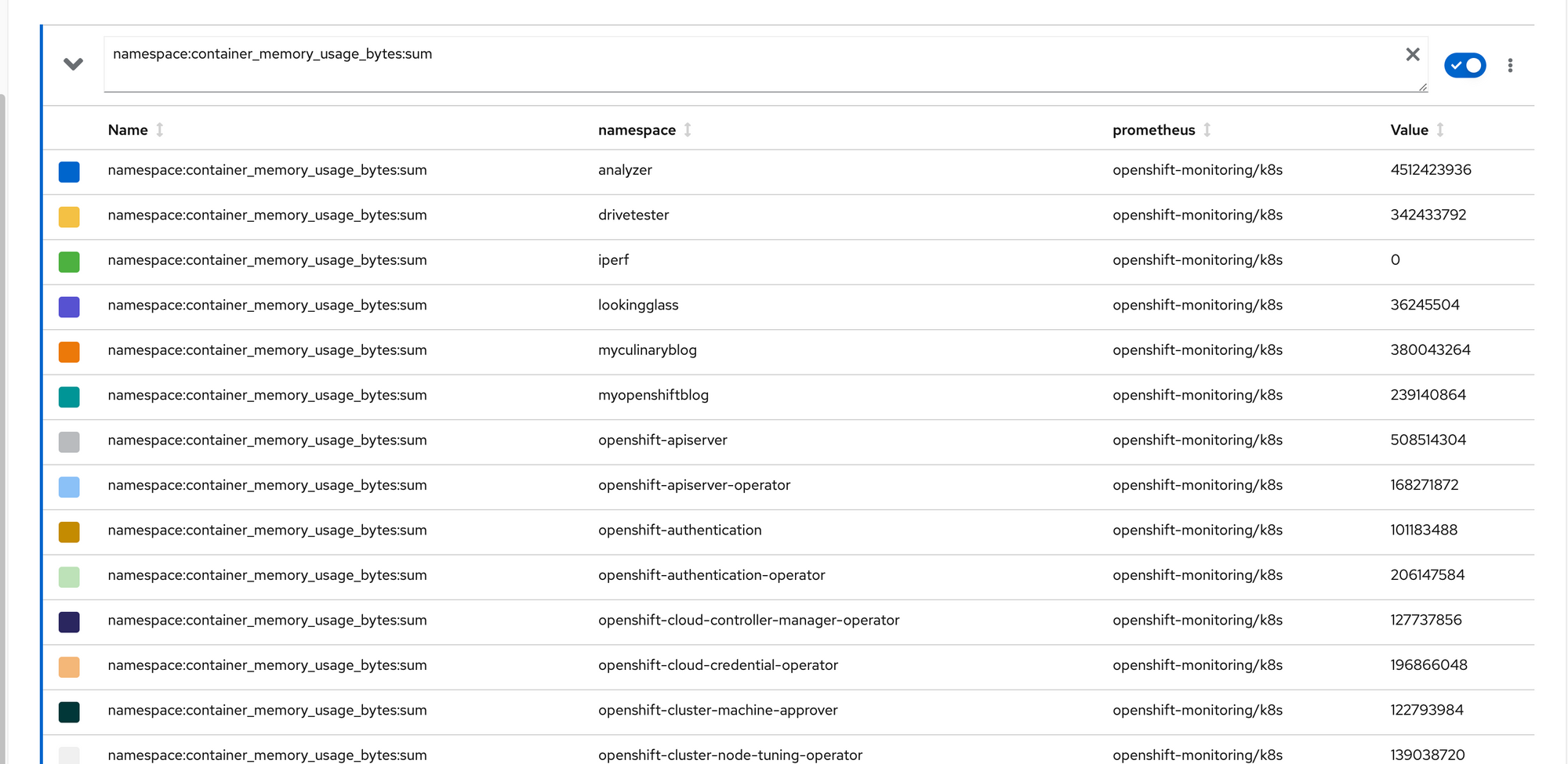Openshift includes built-in queries that can be run to visualize the output of the metrics in yet another way.