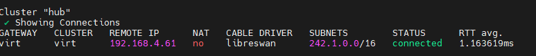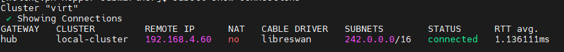 subctl show connectionsFrom the virt perspective, there is a hub cluster connection.