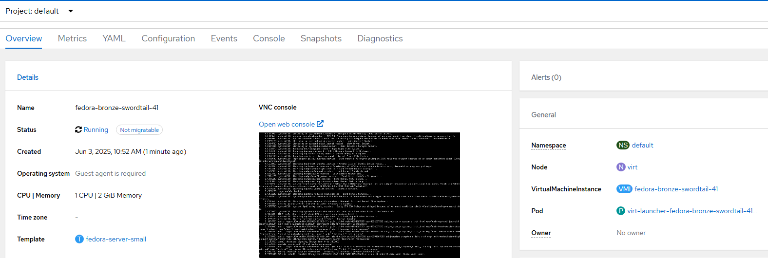 I was in the default project/namespace when I created this VM.