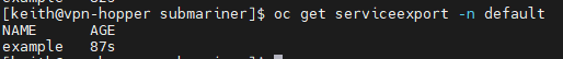 oc get serviceexport -n default