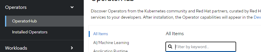 - In the Openshift Web Console, go to Operators --> OperatorHub