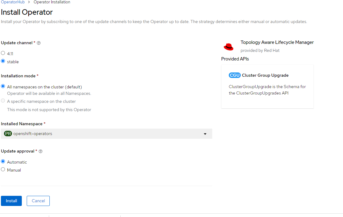 Installing Topology Aware Lifecycle Manager on Hub Cluster