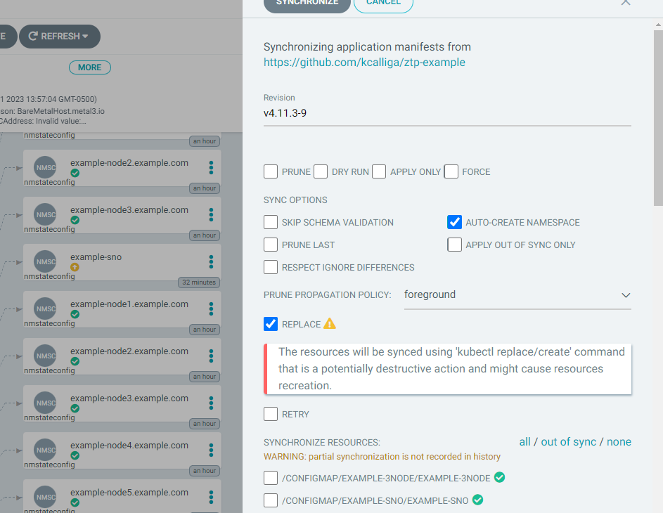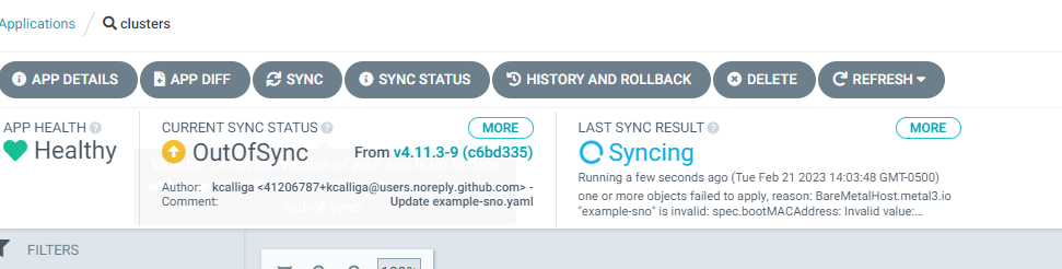 Log back into Openshift Gitops and hit "Refresh" under the ztp-app-project.