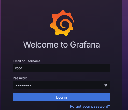 The username/password for the Grafana instance based on this example is root/password in this example but feel free to change.