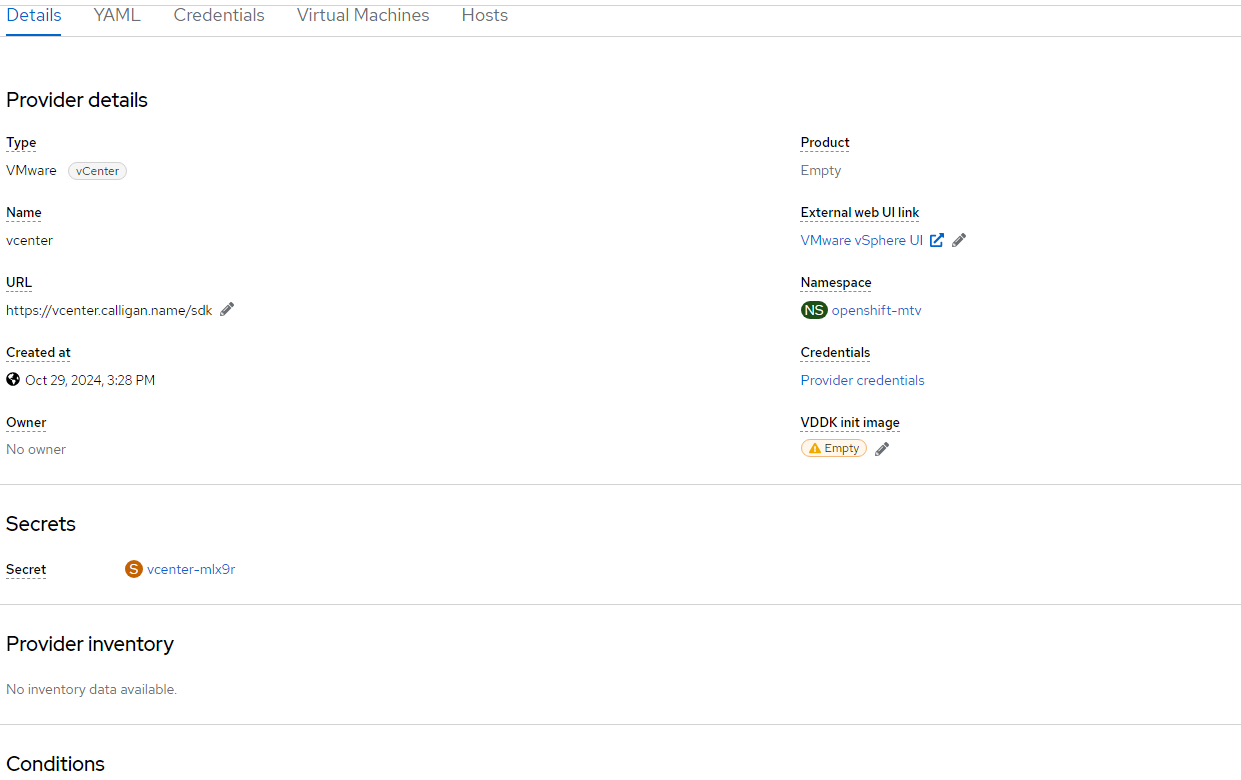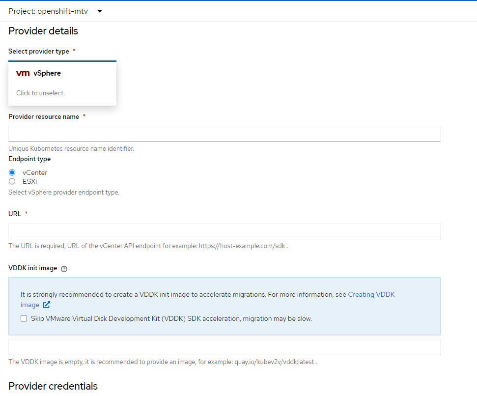 VDDK Init Image: For now, we will take it a little slow and skip the VDDK acceleration. A future article will show how to build this image.