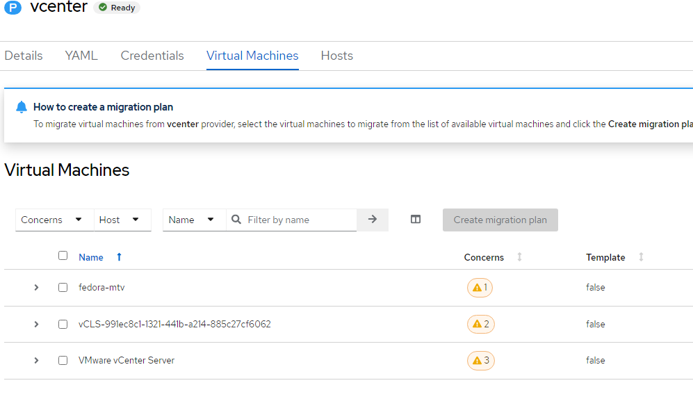 - Let's create a migration plan and move the machine called fedora-mtv.