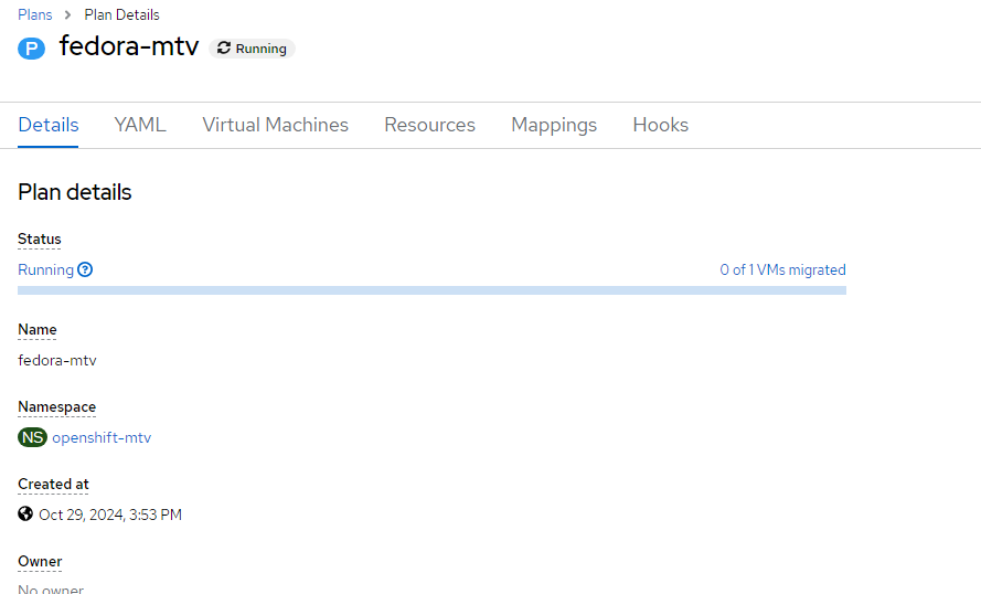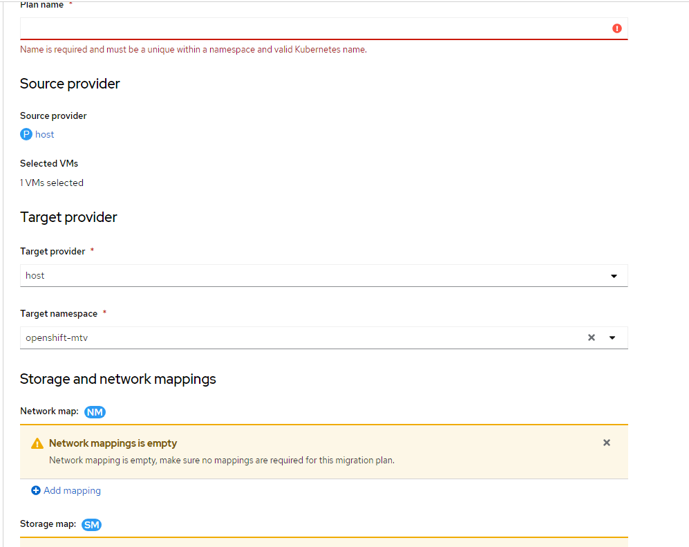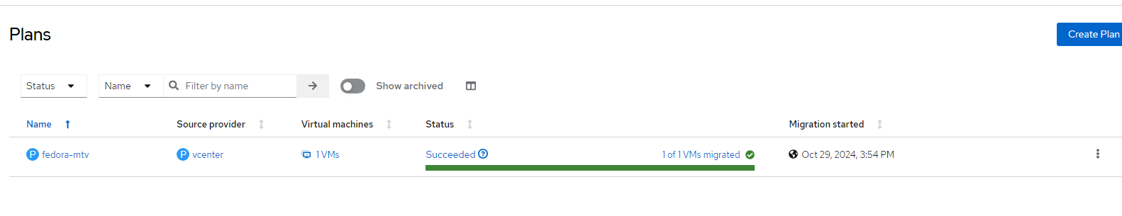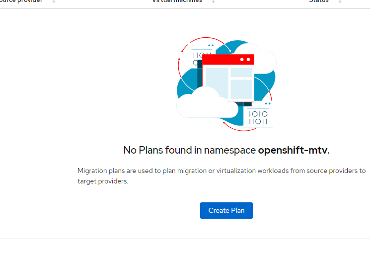 - On the Openshift Console, go to Plans for virtualization sub-menu.