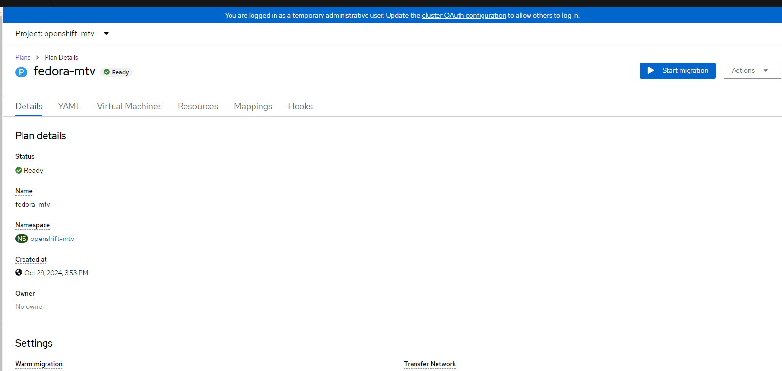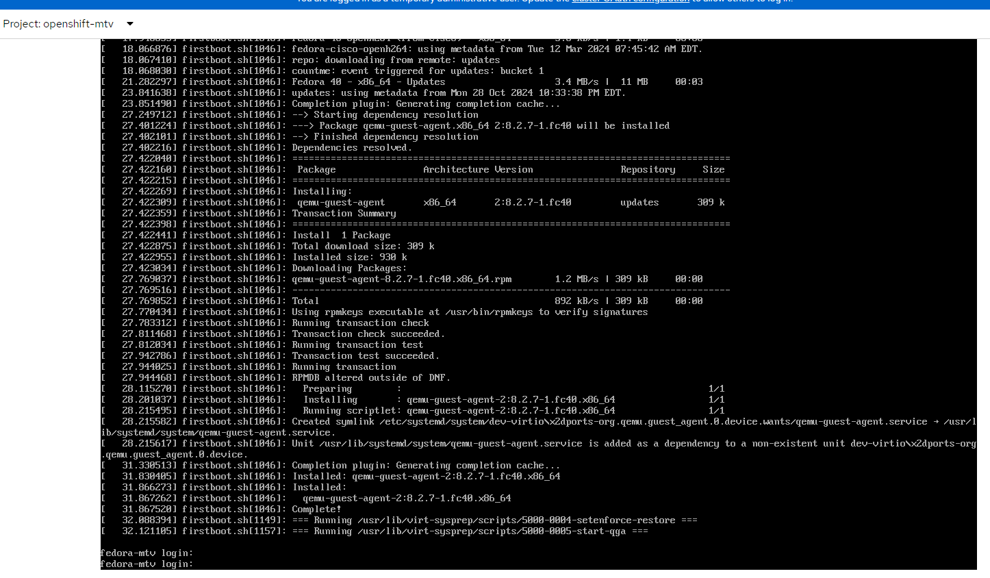 This article will show the installation of the MTV operator along with an example of a cold and warm migration of a Fedora-based VM.
