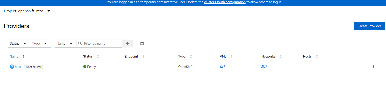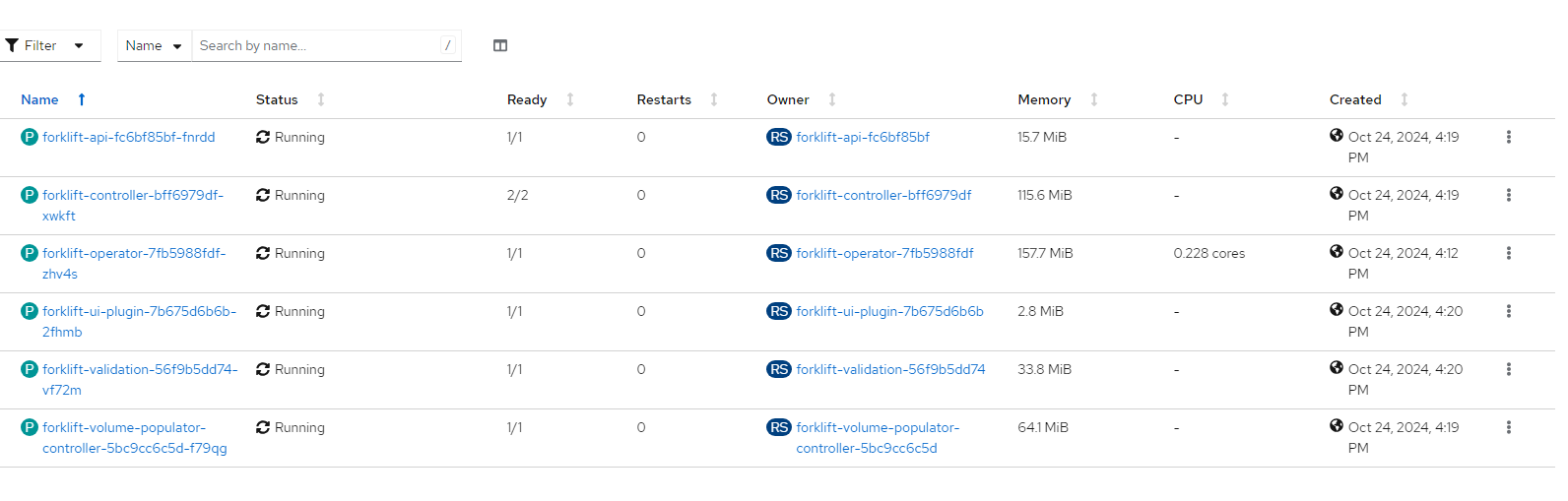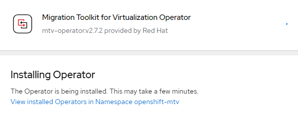 You will see some new workloads running in the openshift-mtv project/namespace at this point.