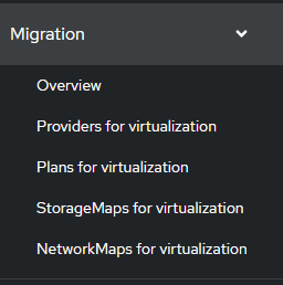 NetworkMaps for Virtualization: This menu allows you to automatically associate a given source storage with a destination network automatically.