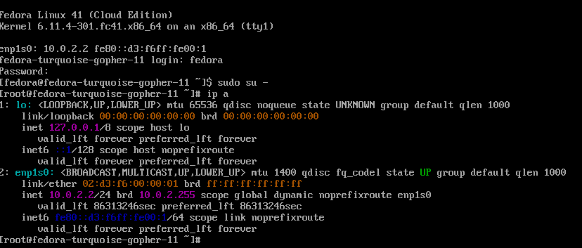 - Take note of the name of this VM. In this case, it is called "fedora-turqoise-gopher-11".