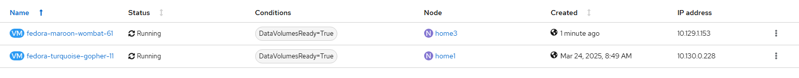 oc new-project vm-networking-2- Follow the same steps listed above to create a VM in this project/namespace.