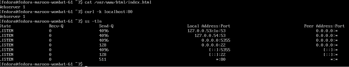 sudo dnf install -y httpd- Create an edit the /var/www/html/index.html on the server using VI or your favorite editor.