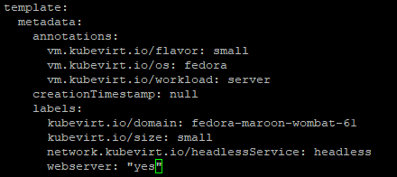 - Edit each VM object. Go into the template --> metadata --> labels section and add the "webserver: yes" label.