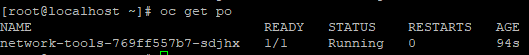 oc get pooc rsh <network-tools-pod>Use the short-name since you are in the same project