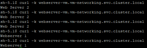 When the service was created earlier, we named it "webserver-vm". This name is import for reaching these load-balanced webservers from other workloads in the cluster.