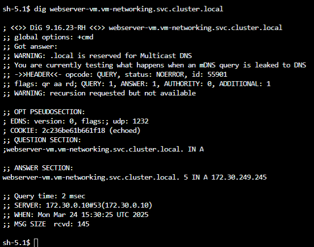 - RSH into the network-tools pod and run the curl again against http://webserver-vm
