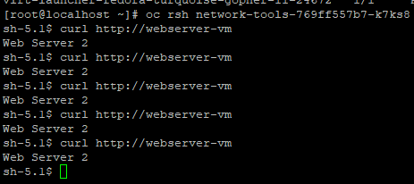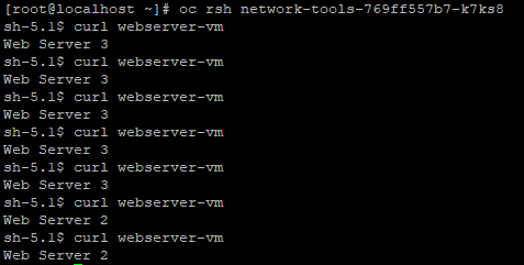 Let's do the continuous curls again from the network-tools pod. See it is switching between webserver 2 and webserver 3 which are the current VMs active.