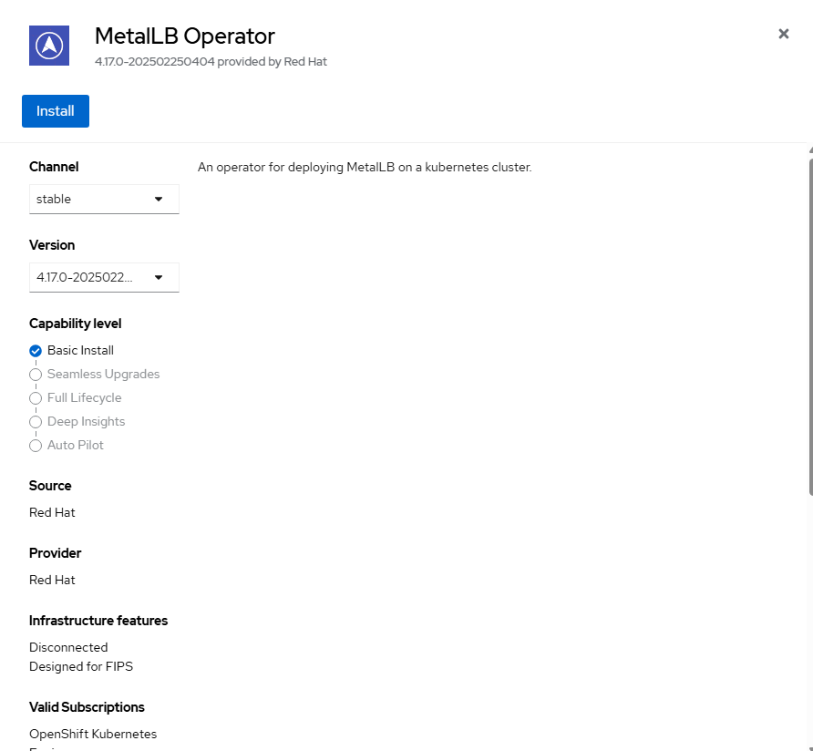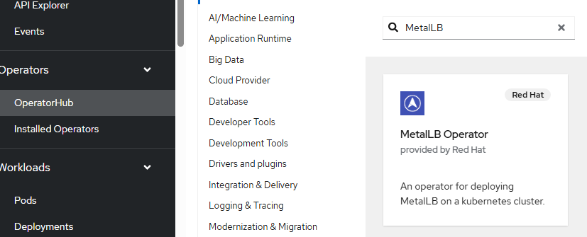 Go to Operators --> OperatorHub and search for "MetalLB"