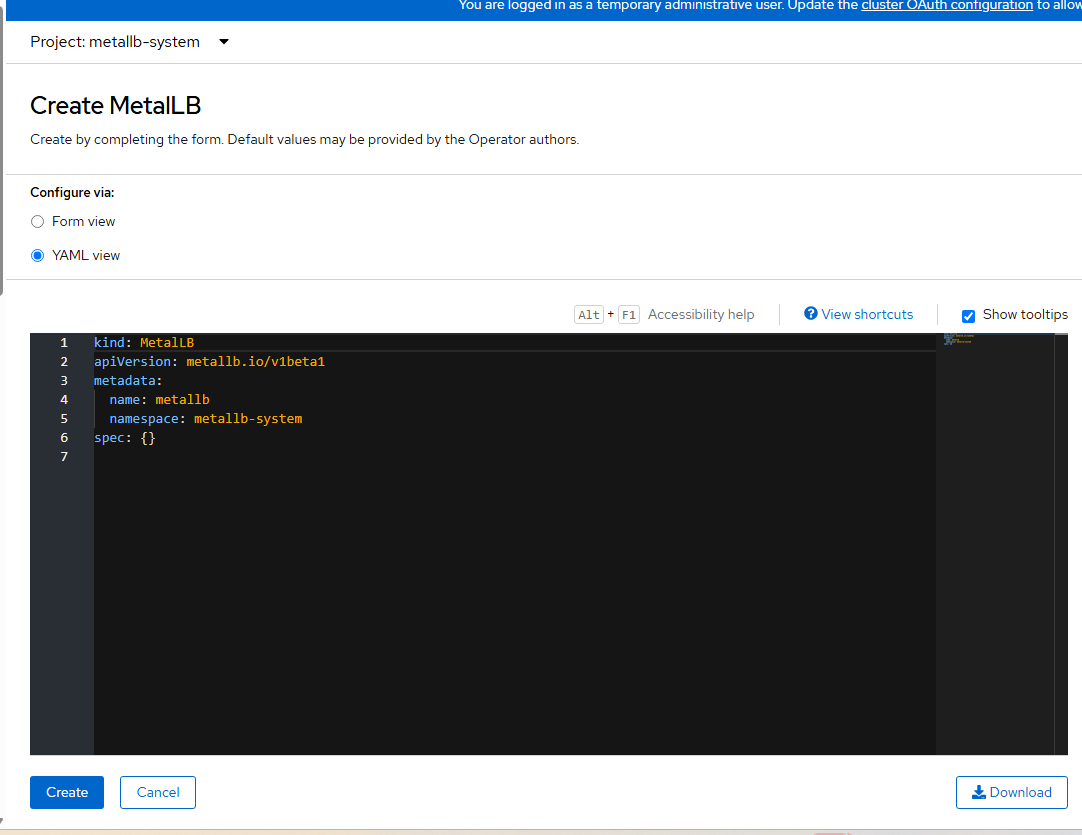 - "yes"- Assign the webserver-vm service to this. Create a file called metallb-service.yaml.