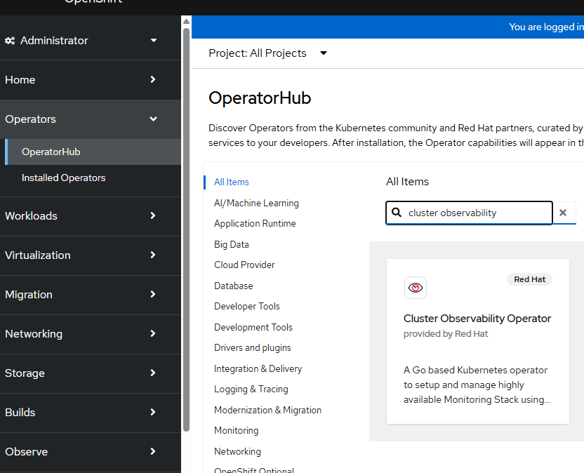 - On the OpenShift web console, go to Operators --> OperatorHub