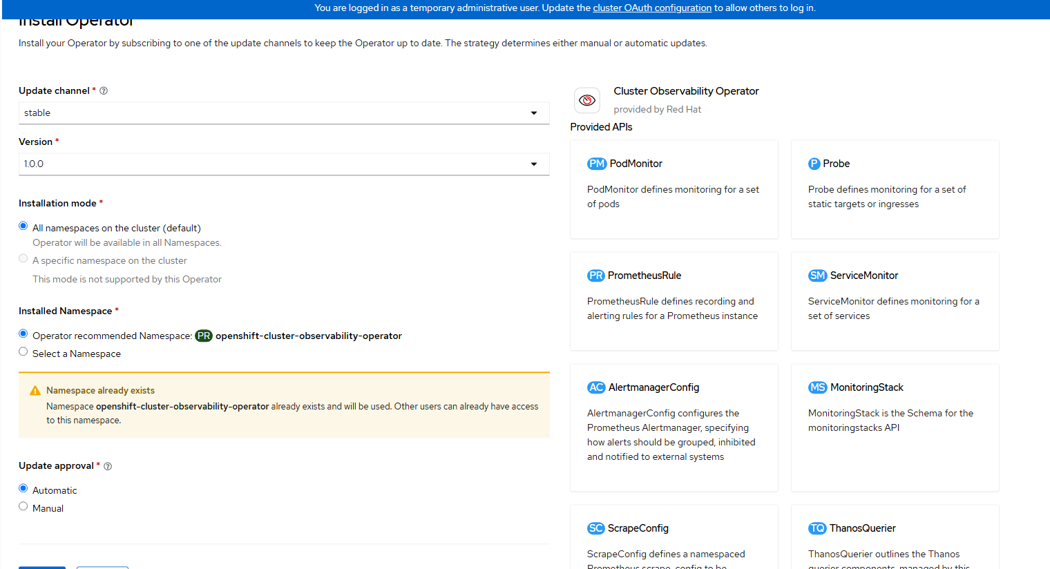 Here are the steps to install the Cluster Observability Operator