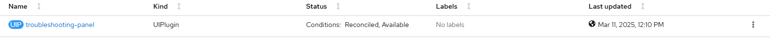 type: TroubleshootingPanel- Wait for the troubleshooting-panel UIPlugin to become available.