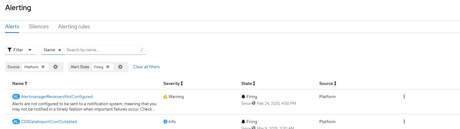 - When going to Observe --> Alerting, click on any of the alerts. In this example, I will click on "CDIDataImportCronOutdated" alert.
