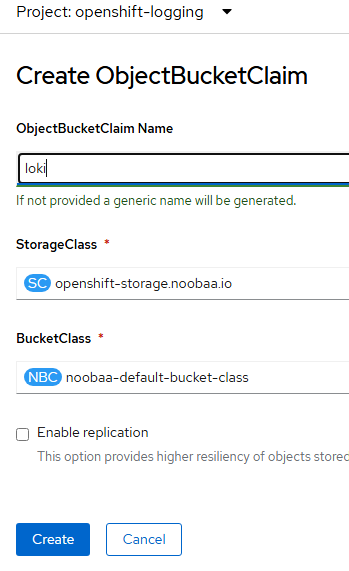 Let's call the ObjectBucketClaim name to be "loki" and use noobaa as shown above.