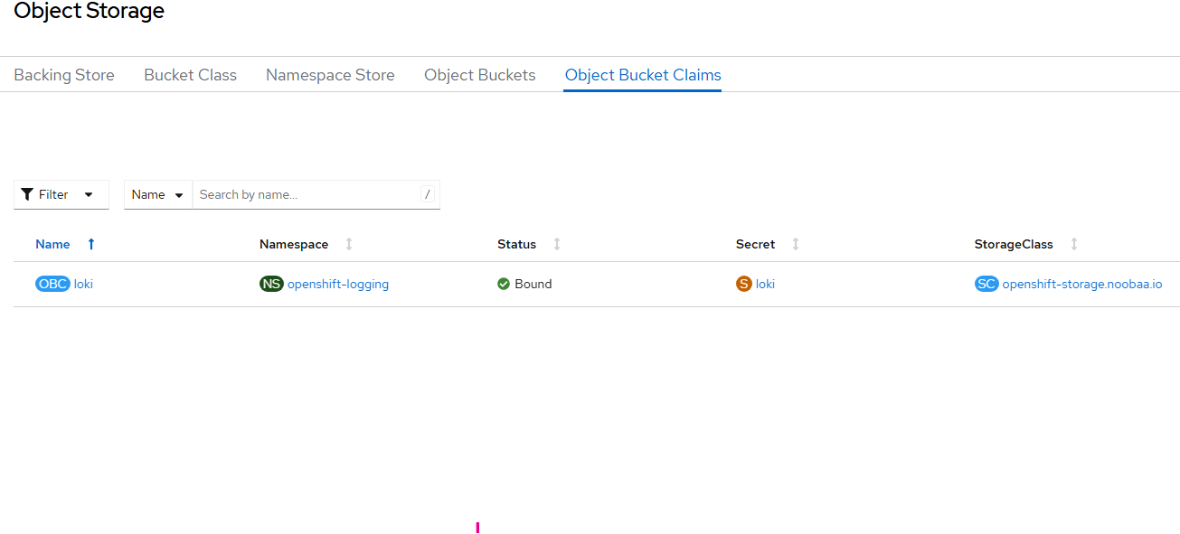 - Once this is created, there will be an associated secret. The secret name is the same as the ObjectBucketClaim name (loki).
