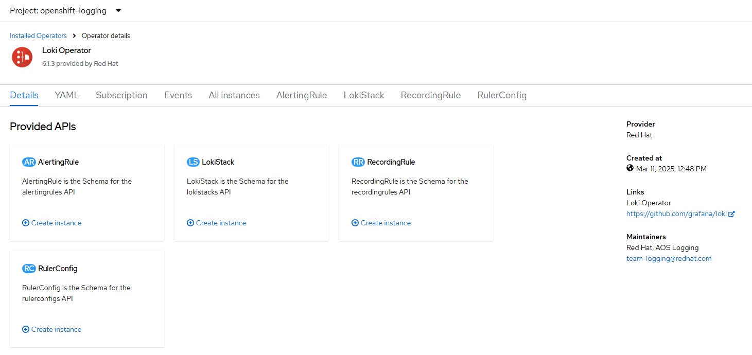 - Install the Loki operator.