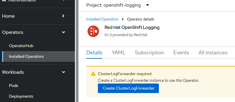 - Install the Red Hat OpenShift Logging Operator