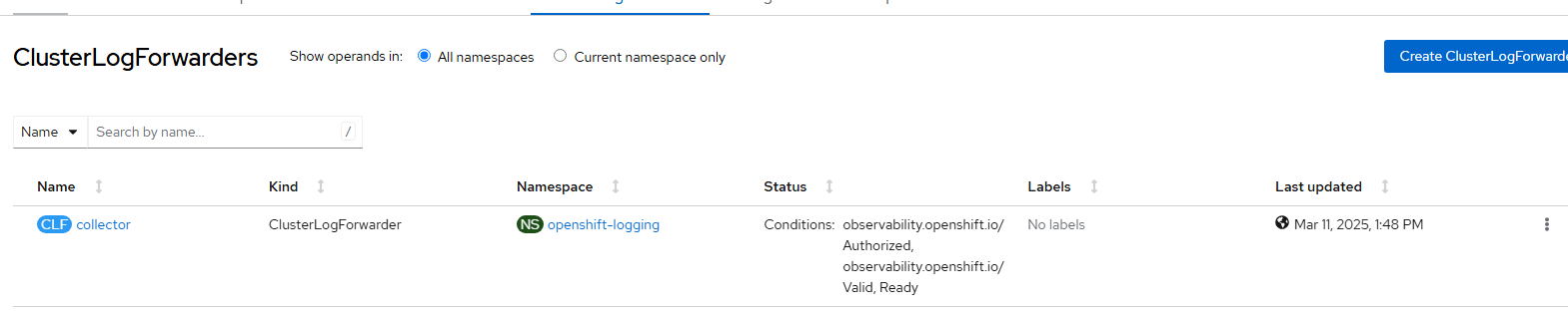 Click "Create ClusterLogForwarder"