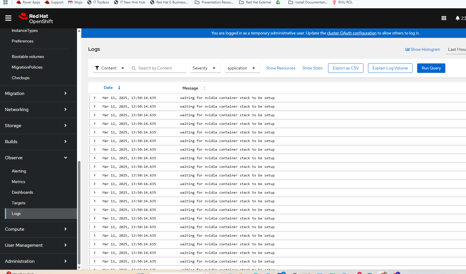 mode: openshift-logging- On the command-line, run the following commands