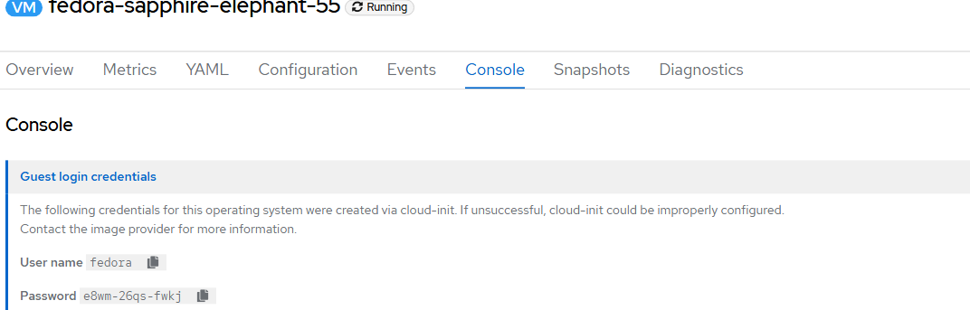 Click on "Guest login credentials". This will display the username and password for the VM (done via cloud-init).